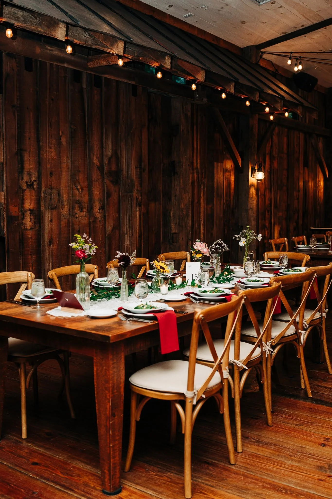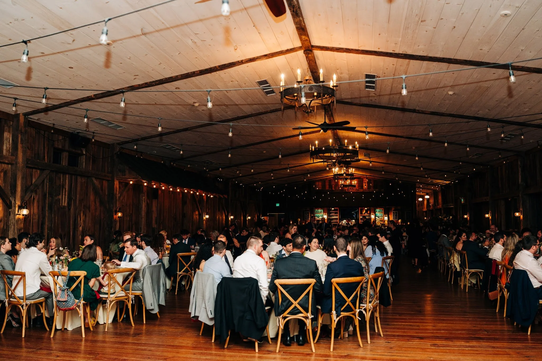 Let’s head inside the barn, where ambient lighting, delicious food, and a spacious setting is waiting for a night full of fun!